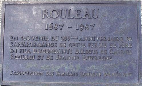 En souvenir du 300ème anniversaire de l'appartenance de cette ferme de père en fils, descendants directs de Gabriel Rouleau et de jeanne Dufresne.
