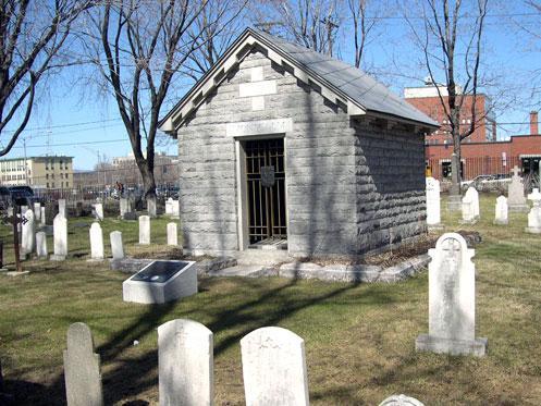 "Le 11 octobre 2001, les restes de Montcalm ont été transportés de la chapelle des Ursulines au cimetière de l'Hôpital-Général de Québec, dans le mausolée situé au coeur du même cimetière. Louis-Joseph, marquis de Montcalm repose désormais dans un sarcophage de granite marqué de son initiale.