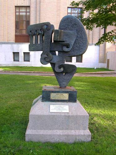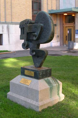 Sculpture située en face du pavillon Roger-Gaudry, à proximité de l'entrée de la Faculté des médecins, dans la cour d'honneur.