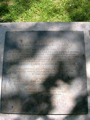 Plaque du mémorial de la guerre de Sept Ans
