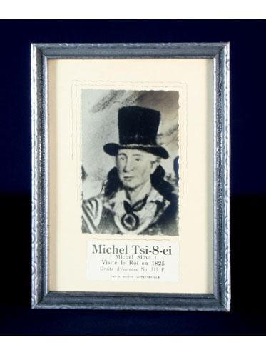 Sous la photographie : Michel Tsi-8-ei (Michel Sioui) Visite le Roi en 1825 Droits d'Auteurs no 319 F. Imp. A. Boivin Loretteville