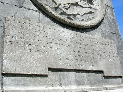 On the 21st Oct. 1805, the British Fleet of 27 sail of the line commanded by the Right Honorable Admiral Lord Viscount Nelson, Duke of Bronte, attacked off Trafalgar. The combine fleet of France ans Spain of 33 sail of the line commanded by the Admirals Villeneuve and Gravina when the latter were defeated with the loss 19 sail of the line captured and destroyed by this memorable action. His country has to lament the loss of her greatest naval hero, but not a single ship.
