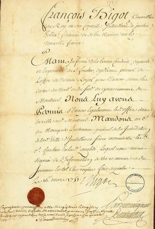Document (Permission au notaire Foucher de pratiquer à Montréal)
