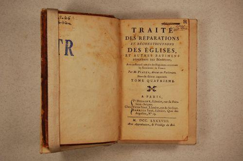 Livre (Traité des réparations et reconstructions des églises et autres bâtimens dépendans des bénéfices : avec un recueil complet des règlemens concernant les économats de France (Tome IV))