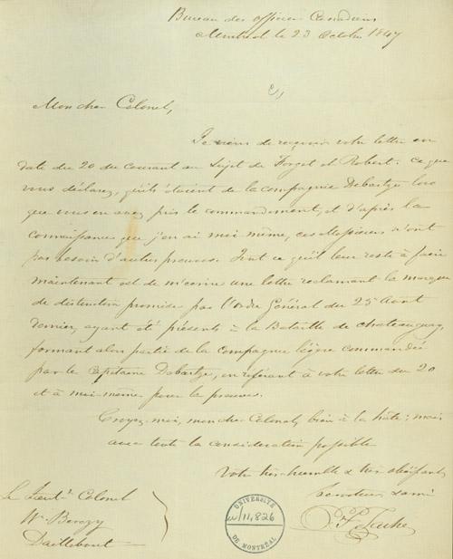 Document (Lettre d'É. P. Taché à Wm Berczy)