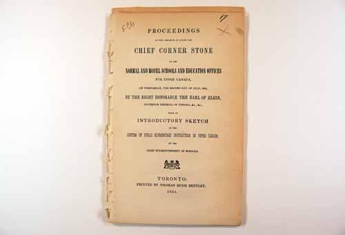 Brochure (Proceedings at the ceremony of laying of chief corner stone of the normal and model schools and education offices for Upper Canada : on Wednesday, the second day of July, 1851)