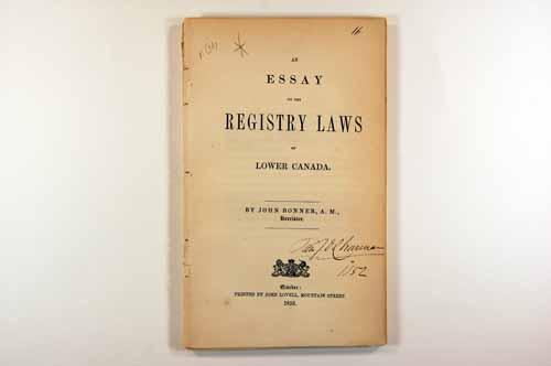 Brochure (An essay on the registry laws of Lower Canada)