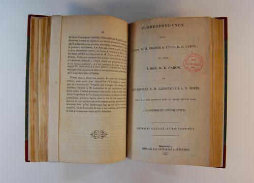Brochure (Correspondance entre l'Hon. W. H. Draper et l'Hon. R. E. Caron ; et, entre l'Hon. R. E. Caron et les Honbles. L. H. Lafontaine et A. N. Morin, dont il a été question dans un débat récent dans l'assemblée législative, contenant plusieurs lettres supprimées)