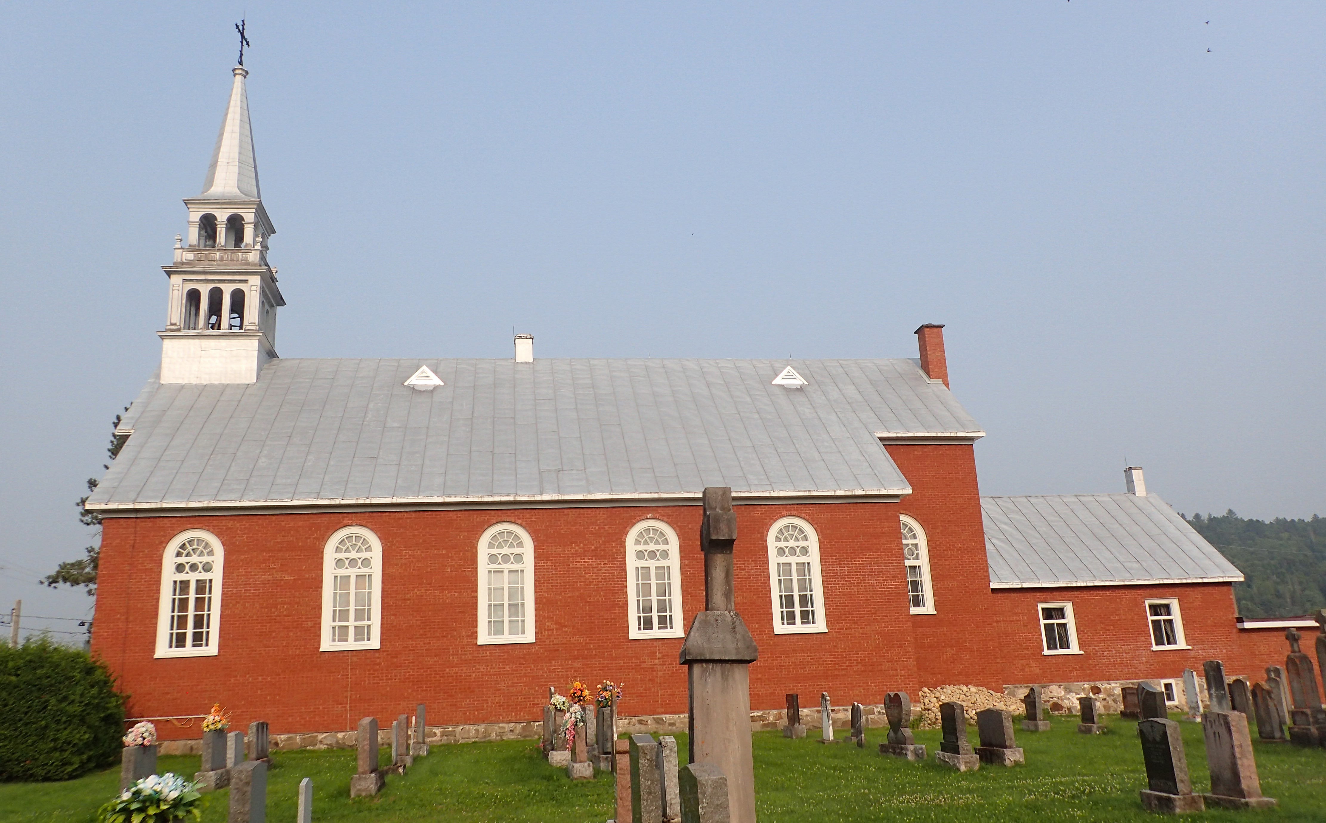 - les matériaux, dont le parement en brique, la couverture en tôle à baguettes, celle en tôle posée à la canadienne de la flèche, les fondations en maçonnerie de moellons ainsi que les éléments architecturaux et ornementaux en bois;