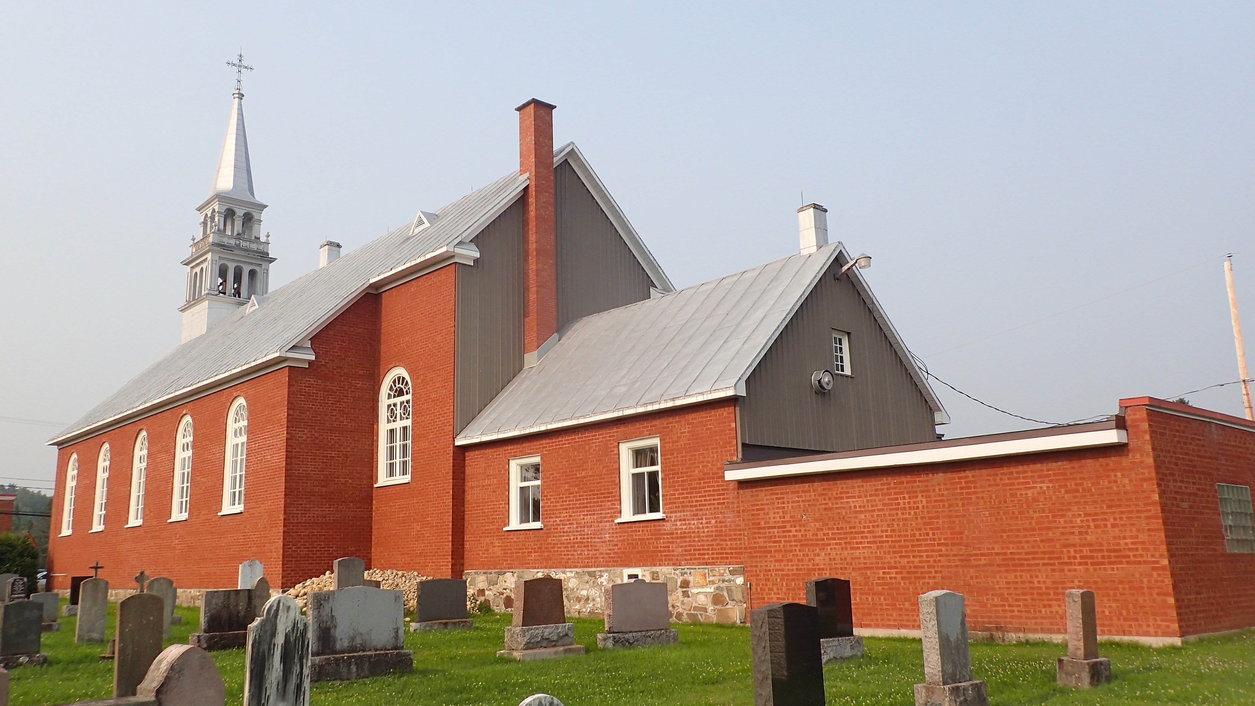 Lors d'une assemblée en 1885, les marguilliers et les francs tenanciers de la paroisse décident de faire construire une nouvelle église pour remplacer la chapelle. Celle-ci, déjà agrandie depuis sa construction, est devenue trop petite pour les besoins de la communauté. La décision d'ériger un nouveau presbytère est également prise à ce moment. Les plans du nouveau lieu de culte sont conçus par les architectes montréalais Maurice Perrault (1857-1909) et Albert Mesnard (1847-1909). Ils sont approuvés par l'évêque de Montréal en 1885 et les paroissiens effectuent des corvées pour transporter les matériaux nécessaires. La construction débute au printemps 1886. Elle est dirigée par un entrepreneur de Saint-Ambroise, Joseph Fitzpatrick. Les travaux majeurs sont achevés la même année et l'église est ouverte au culte. Deux ans plus tard, les marguilliers et le curé décident de réaliser de nouveaux travaux sur le lieu de culte. Ceux-ci sont effectués en 1889 sous la supervision du paroissien Wilfrid Lacasse. Le parement en brique est probablement réalisé à ce moment.