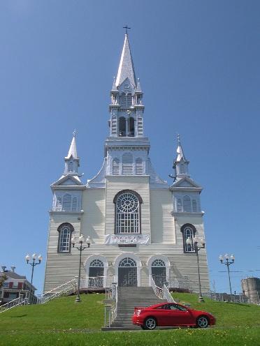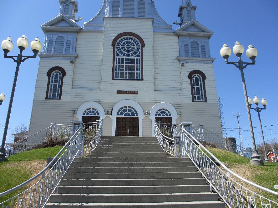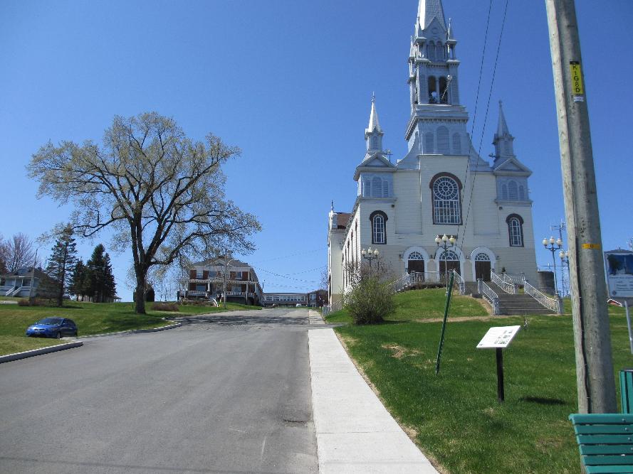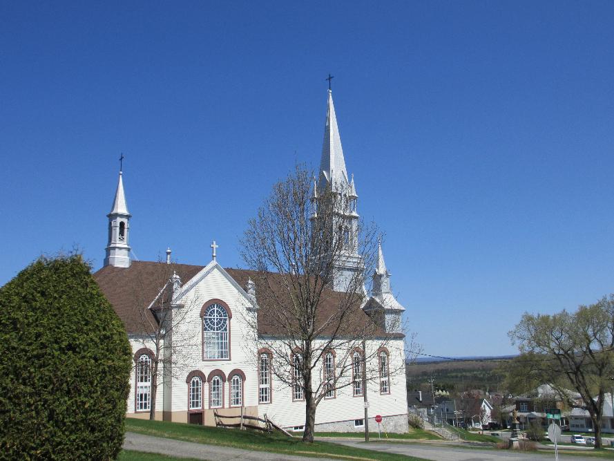 En mai 1902, Jean Larochelle commence la construction de l'église en bois pour la somme de 10 300 $. Suivant les plans de l'architecte Joseph-Georges Bussières (né en 1865), la charpente a 150 pieds de longueur par 60 pieds de largeur et une hauteur de 45 pieds. Deux sacristies encerclent le choeur. Le premier curé résidant Louis-Adolphe Grenier chante la première messe le 22 octobre 1903. Par la même occasion, on procède à la bénédiction des trois cloches : Marcel-Prosper, Joseph-Eugène et Louis-Nazaire.