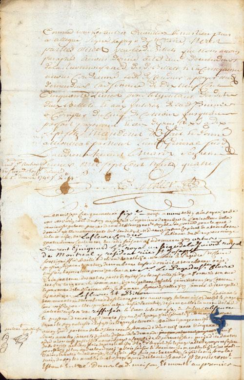 Document (Jugement contre Louis Lepage de Sainte-Claire en faveur de Varin, contrôleur de la marine, pour 1900 livres)