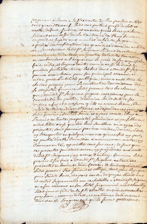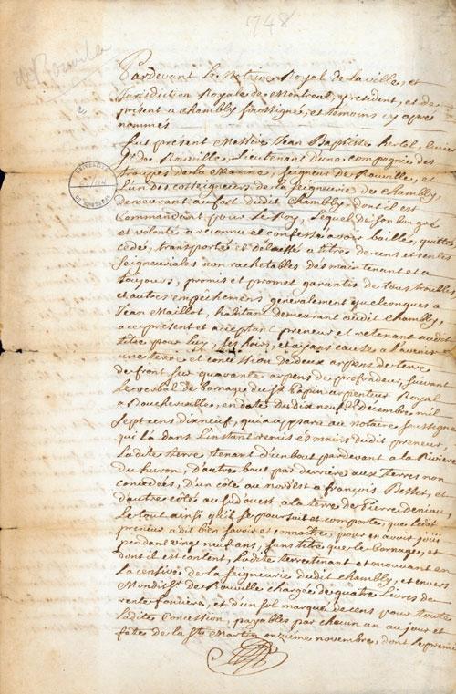 Document (Concession de terre, 2 arpents par 40, à Chambly, par Jean-Bte Hertel de Rouville à Jean Maillot)
