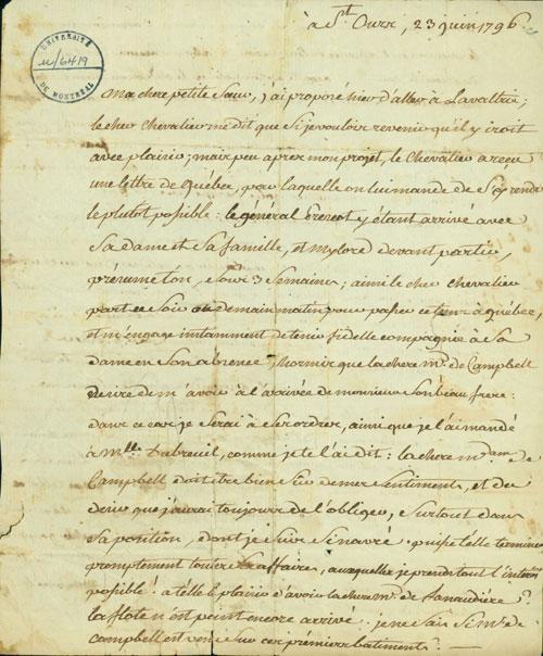 Document (Lettre de La Corne à sa soeur)
