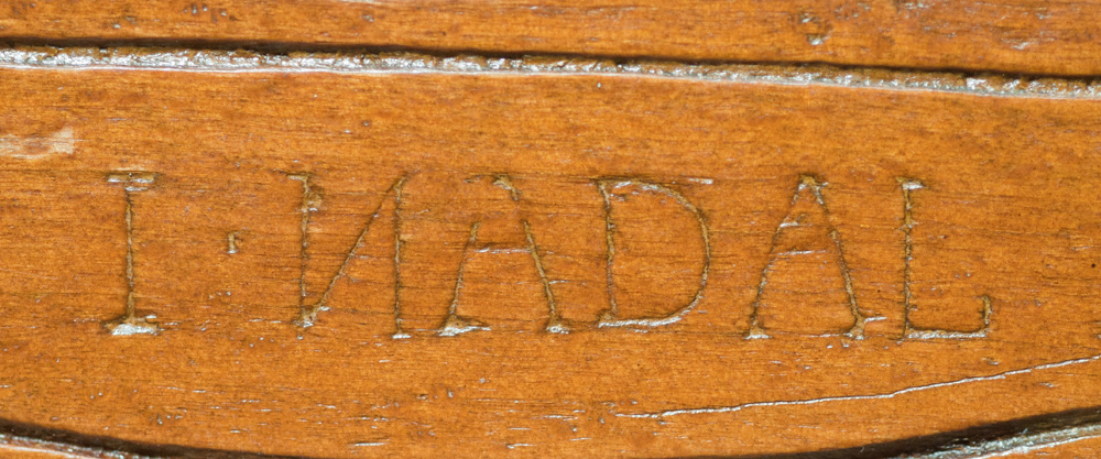 L'estampille au dos de la traverse arrière, « I NADAL [N inversé] », indique que ces pièces proviennent de l'atelier de Jean Nadal (act. vers 1730-1756) établi sur la rue de Cléry, à Paris. Reçu maître aux alentours de 1730, celui-ci fut le fondateur d'une importante famille de menuisiers de sièges.