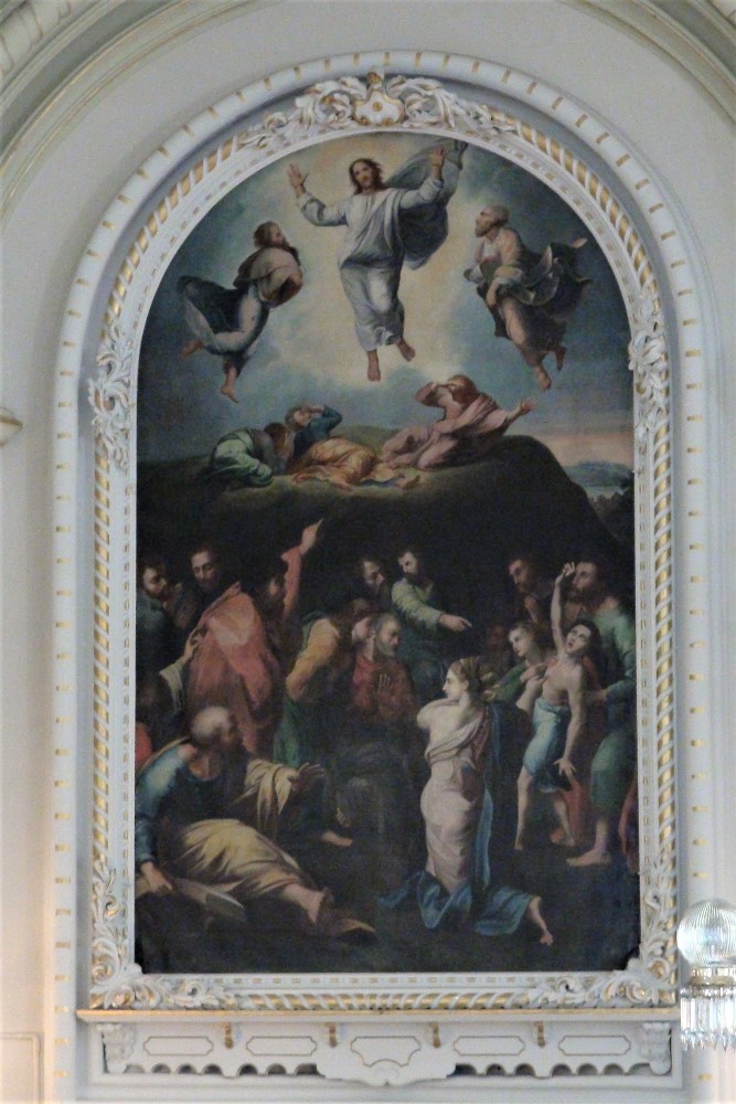 Privilégiant les thèmes bibliques, l'artiste s'inspire du tableau de Raphaël La Transfiguration, achevé en 1520 et conservé à la Pinacothèque vaticane, pour exécuter celui qui orne maintenant le choeur de l'église de Saint-Laurent à l'île d'Orléans.