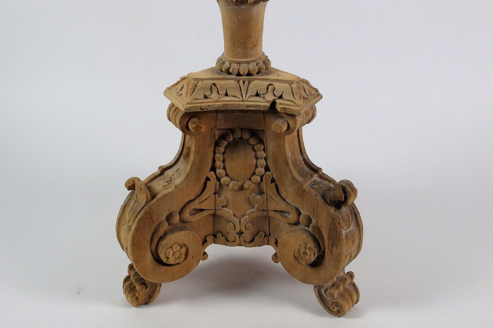 Le chandelier d'autel est utilisé à partir du XVIIIe ou du XIXe siècle dans la paroisse Saint-Laurent de l'île d'Orléans. En 1915, l'abbé Joseph-Ulric East (né en 1859), curé de Saint-Laurent de 1907 à 1928, le donne aux soeurs du Bon-Pasteur de Québec avec sept autres sculptures anciennes. La congrégation est alors bien établie dans la paroisse, où elle dirige un couvent depuis 1875. C'est sans doute la supérieure générale Émilie Langlois (1852-1936) qui sollicite ce don. À cette époque, Émilie Langlois rassemble une collection d'antiquités et d'objets qui témoignent des origines et du développement de l'oeuvre du Bon-Pasteur. Elle expose la collection dans un musée-souvenir qu'elle a créé en 1900 à la maison mère de Québec.