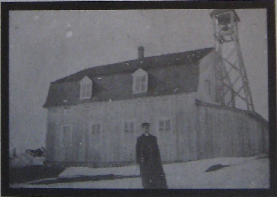 À l'origine, cette maison fut construite pour servir de chapelle-école. Elle est bâtie en 1894 sur un emplacement différent, de l'autre côté du chemin, à environ une centaine de pieds du bureau de poste actuel. Les prêtres missionnaires et ensuite le premier curé résident de Saint-Benjamin y viennent exercer leur ministère jusqu'à la construction de l'église actuelle en 1906. La première institutrice (Obéline Gendreau) à avoir enseigné à Saint-Benjamin y a son école et son logement au-dessus de la chapelle. L'école est ouverte à l'automne 1896 avec 32 élèves venant des quatre coins de la nouvelle localité. En 1908, la bâtisse est vendue à Joseph Boucher et déménagée sur son site actuel pour la transformer en boutique de forge au rez-de-chaussée et en salon funéraire à l'étage. Les propriétaires suivants se succèdent : Léonidas Veilleux, Benjamin Caron (ce fut le premier atelier de couture opéré par Gaston Caron à Honoré), Valère Côté (propriétaire d'un magasin de scies à chaîne), Fernand Bélanger (dont l'épouse Jeannette Roy, coiffeuse, y ouvre son salon de coiffure). Au fil du temps, ce bâtiment fut le lieu où ont été tenues les premières réunions du conseil municipal, où Léonidas a opéré son premier atelier de menuiserie et où les Chevaliers de Colomb ont tenu leurs assemblées. Le bâtiment est transformé en résidence vers les années 1960.