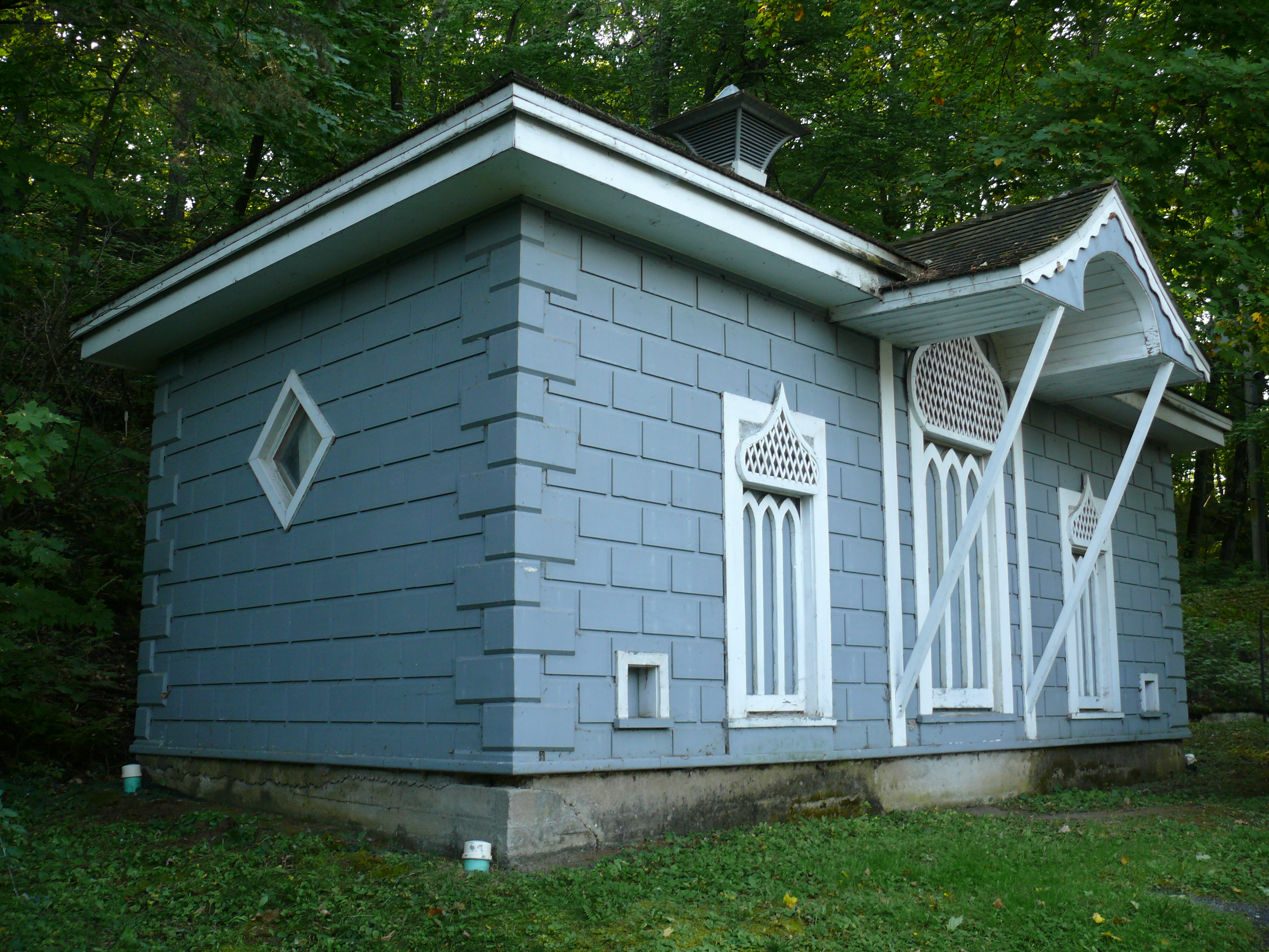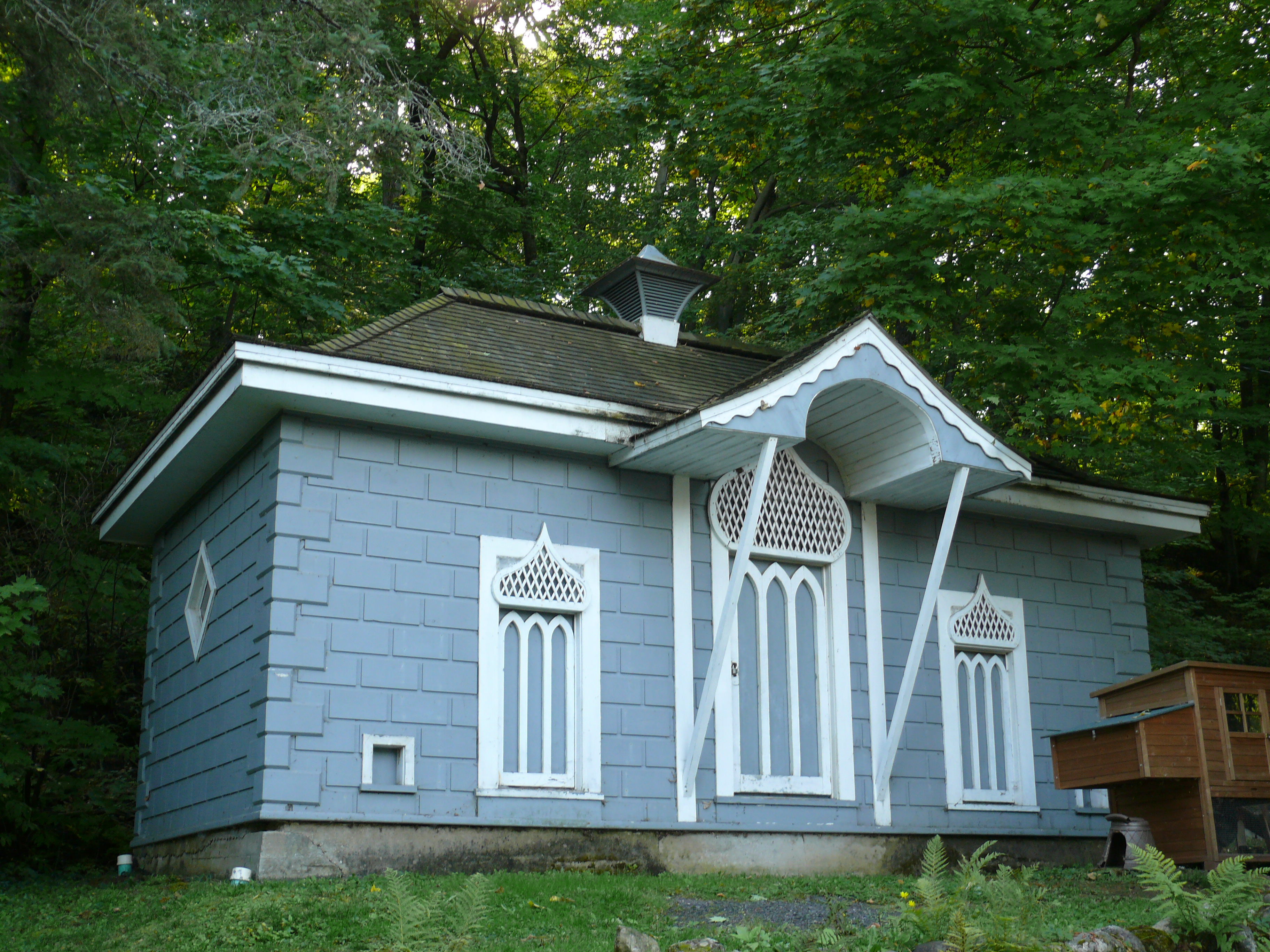 Le bâtiment est situé dans la campagne de Sainte-Croix, sur le Domaine Joly-De Lotbinière qui se trouve en bordure du fleuve Saint-Laurent. Il est disposé derrière la grande résidence de villégiature. Le bâtiment a un toit en pavillon, et il s'inscrit dans le style byzantin. Le bâtiment a été construit vers 1855, et il était anciennement utilisé comme poulailler. Il a ensuite été utilisé comme latrines et et comme garage pour la voiture du propriétaire.