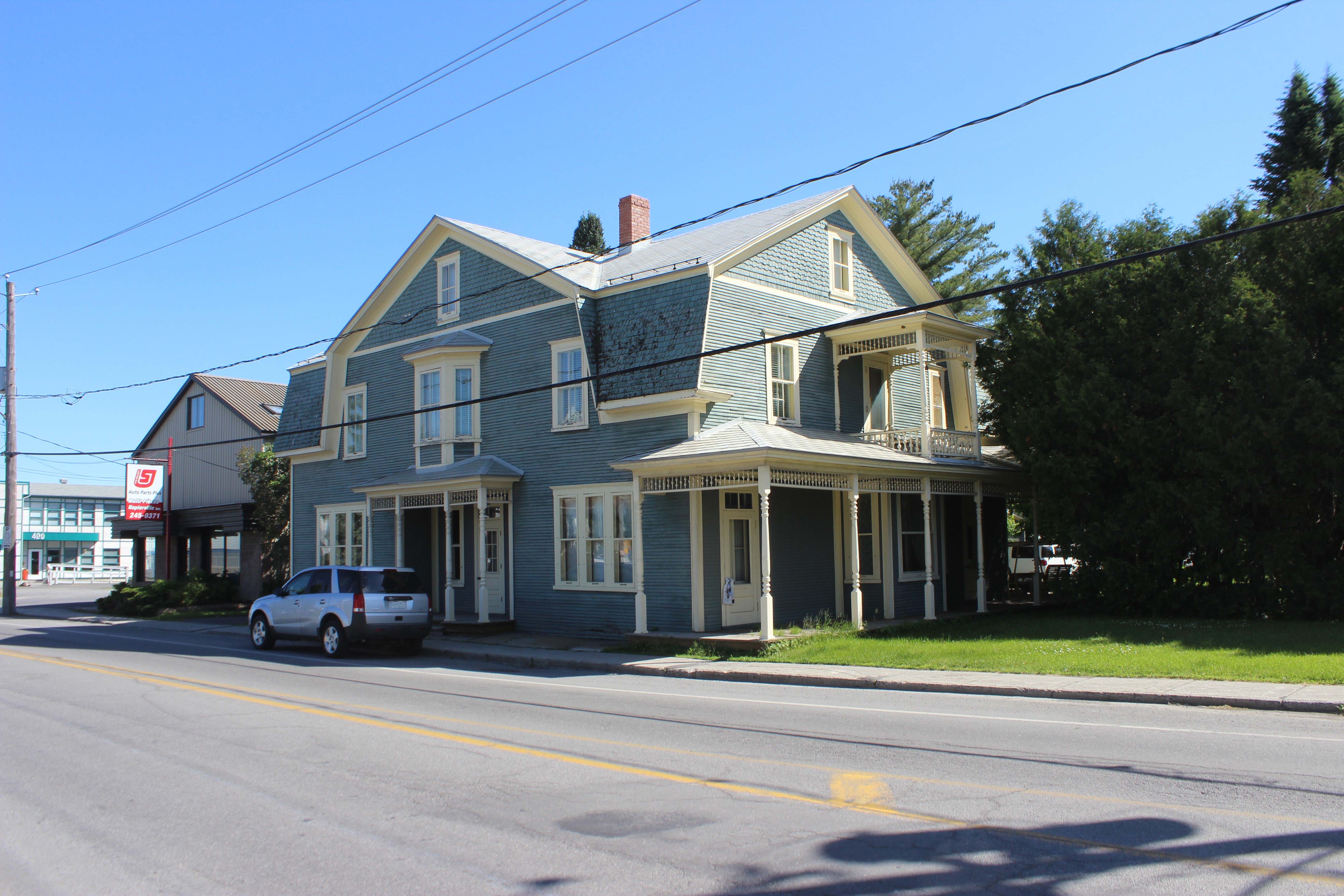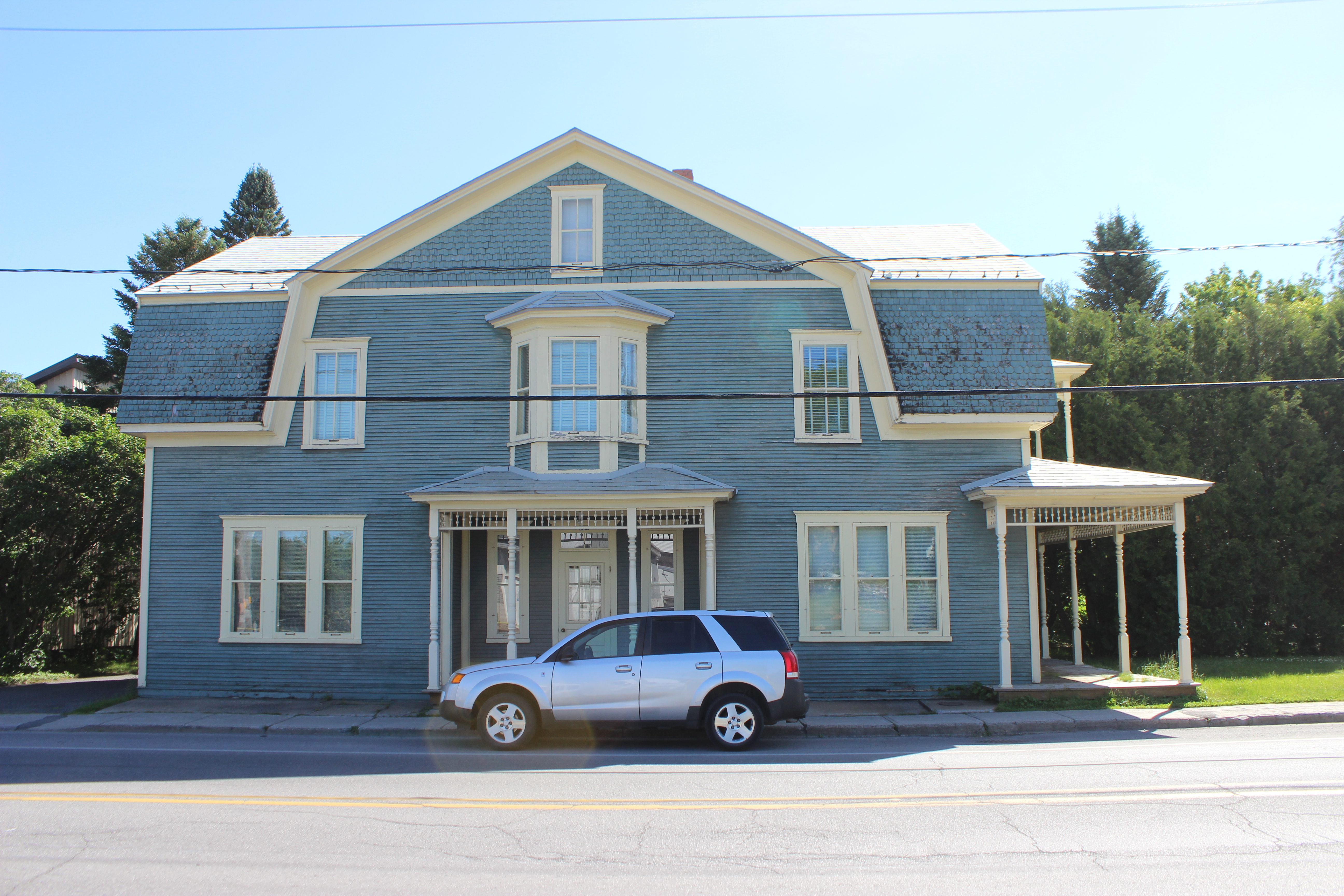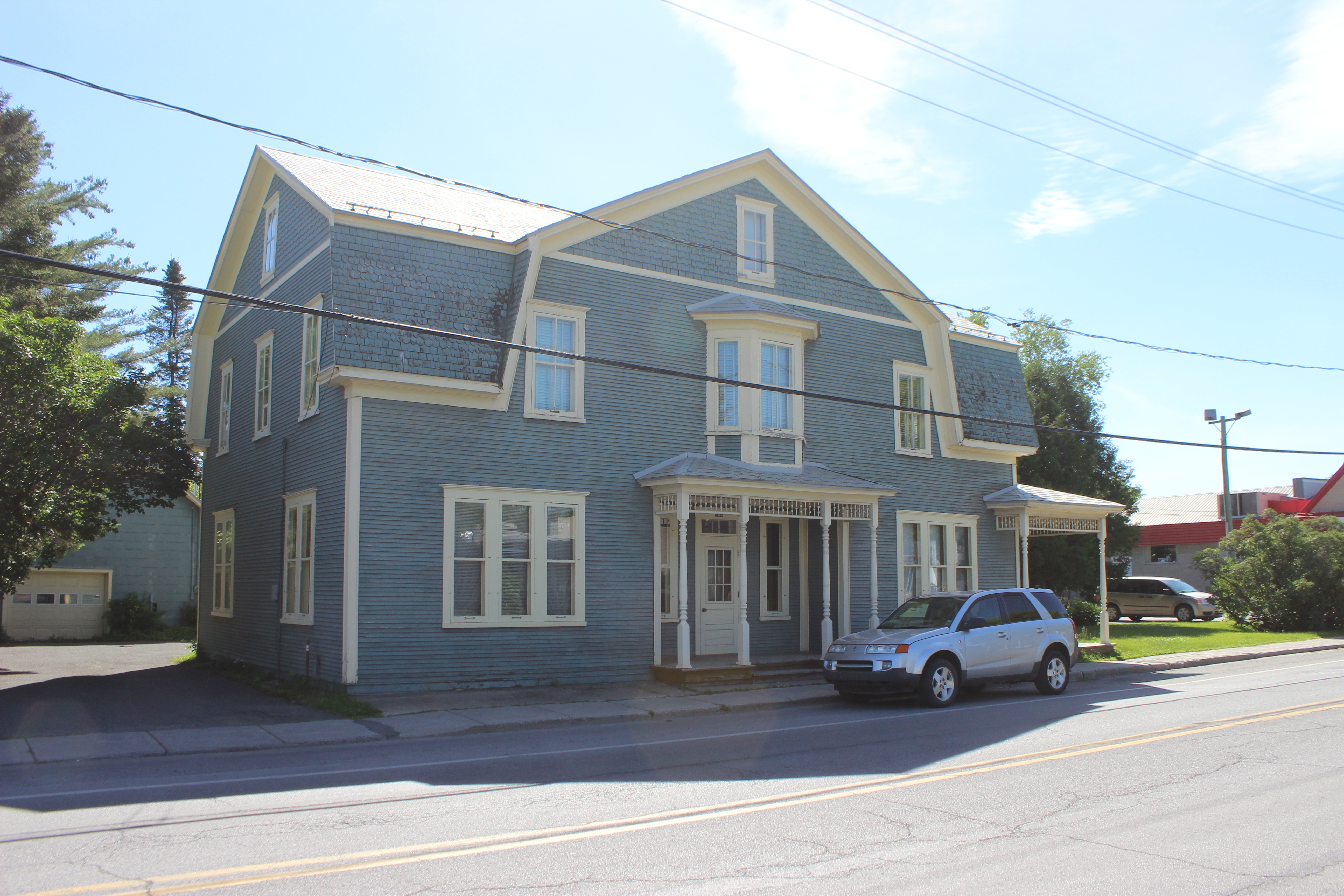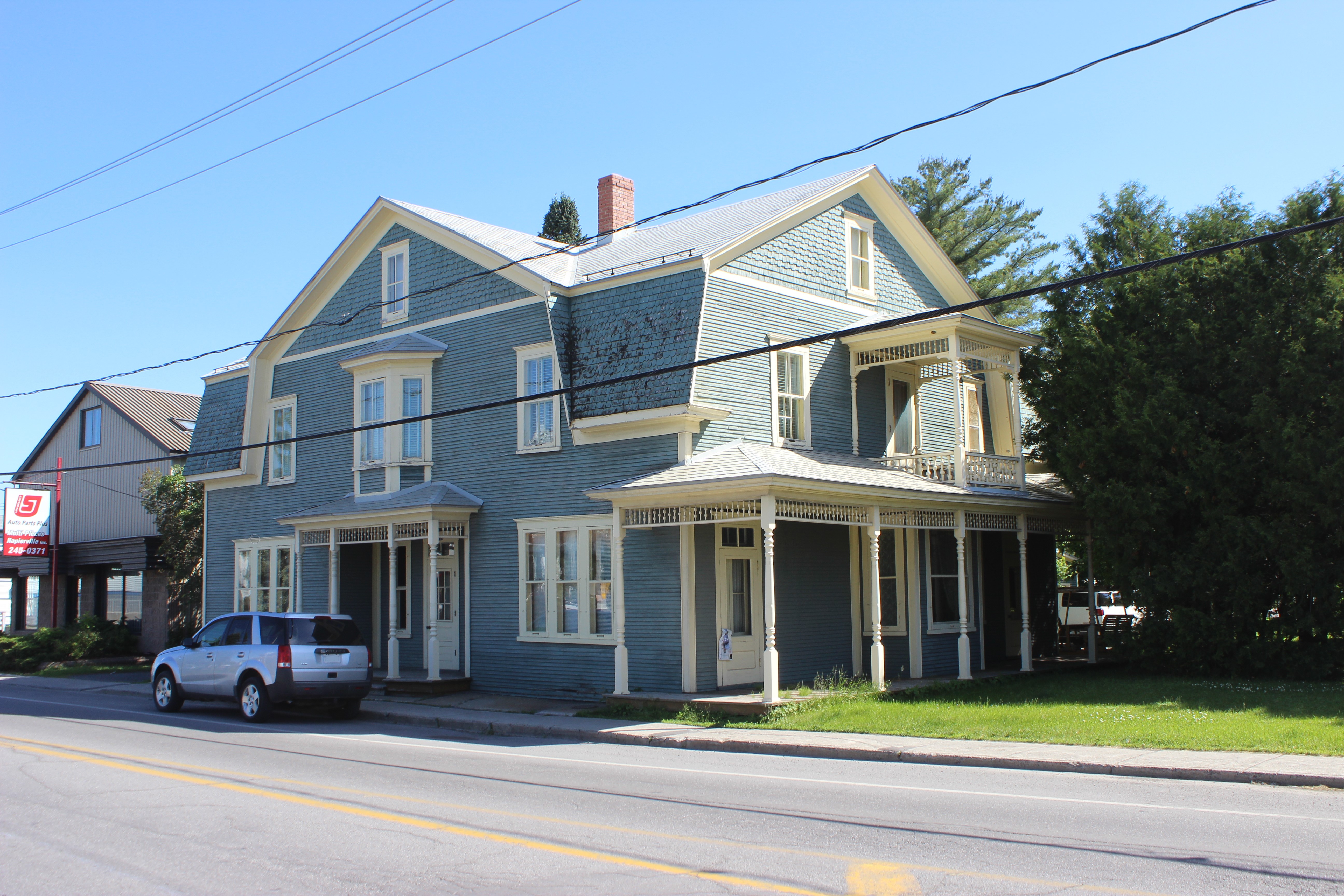 Cette habitation a été construite avant 1884 et habitée par les Stuart pendant près de 50 ans aux XIXe et XXe siècles. Le courant architectural victorien voit le jour durant le règne de la reine Victoria. En milieu rural, cette propriété appartient habituellement à l'élite locale du village. La présence de divers éléments (balcons, galeries, appentis, etc.) très variés et souvent originaux illustre le grand niveau d'appropriation de cette typologie architecturale par ses propriétaires. Cette maison à toit brisé se distingue par son pignon mansardé au sein du mur gouttereau longeant la rue. Son plan rectangulaire est très grand et prolongé d'un volume à l'arrière. Les prolongements extérieurs sont nombreux — baie en saillie, perron, galerie surmontée d'un balcon — et richement ornés. Elle a conservé un revêtement de planches à clins, de l'ardoise sur une partie de la toiture (le seul cas du corpus), des ouvertures traditionnelles en bois et une ornementation élaborée en bois : colonne, lambrequin, planches cornières et de rive, chambranles, retours de corniche, balustrade, bardeaux découpés. Cette maison est unique. Finalement, elle profite d'une localisation de choix, à quelques pas du palais de justice et du noyau religieux.