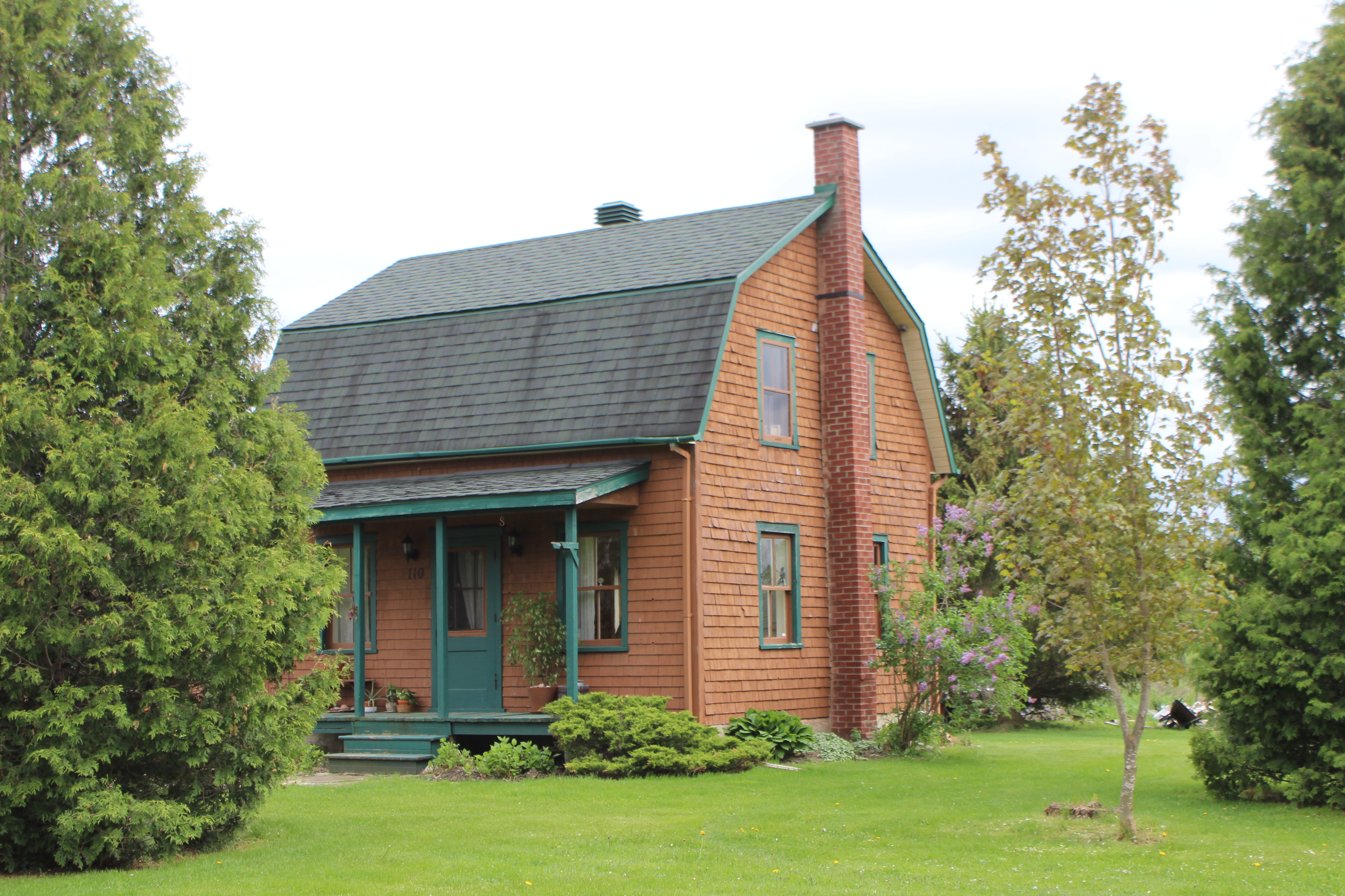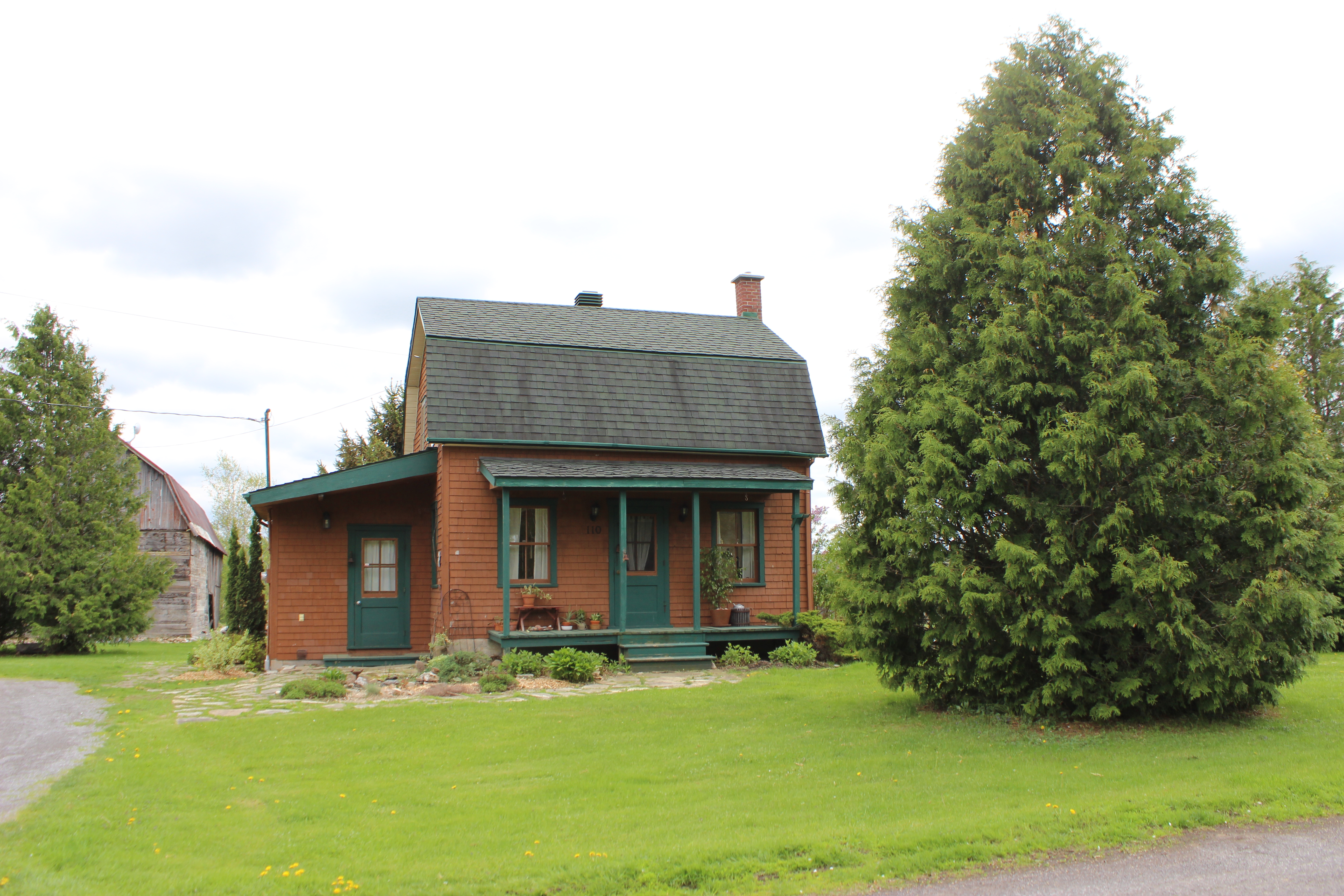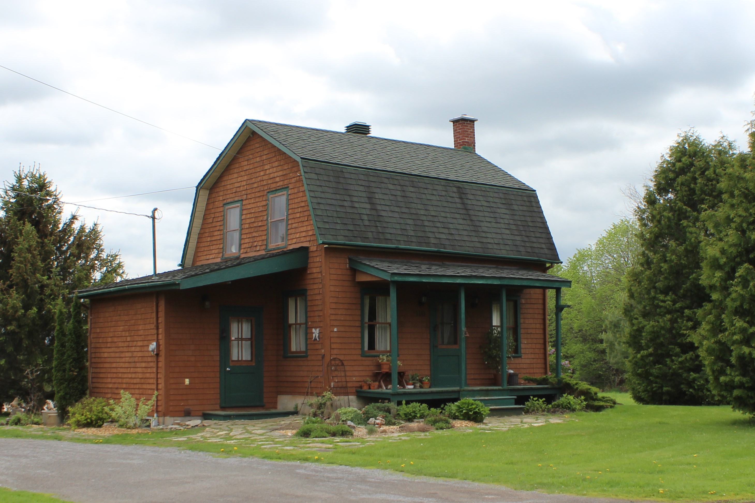 La maison à mansarde ou à toit brisé est la version populaire et modeste de l'architecture bourgeoise et institutionnelle de style Second Empire. Elle apparaît au Québec vers la fin des années 1860 et est ensuite popularisée. Elle témoigne d'un désir de reproduire l'architecture à la française, associée à l'identité québécoise. Ce type de toit présente l'avantage de rendre les combles plus spacieux, de permettre une meilleure isolation et de présenter une certaine prospérité, la charpente plus complexe devant être élaborée par un charpentier compétent. La mansarde est généralement dotée de lucarnes à pignon dans ses brisis, ce qui n'est pas le cas ici. Le corps de logis rectangulaire à deux étages est peu exhaussé du sol et le volume est modeste. Ses murs extérieurs sont revêtus de bardeaux de bois. La composition de la façade est symétrique, et elle est dotée d'une galerie couverte et d'une ornementation sobre. De beaux bâtiments agricoles se trouvent derrière, dont une grange-étable mansardée.