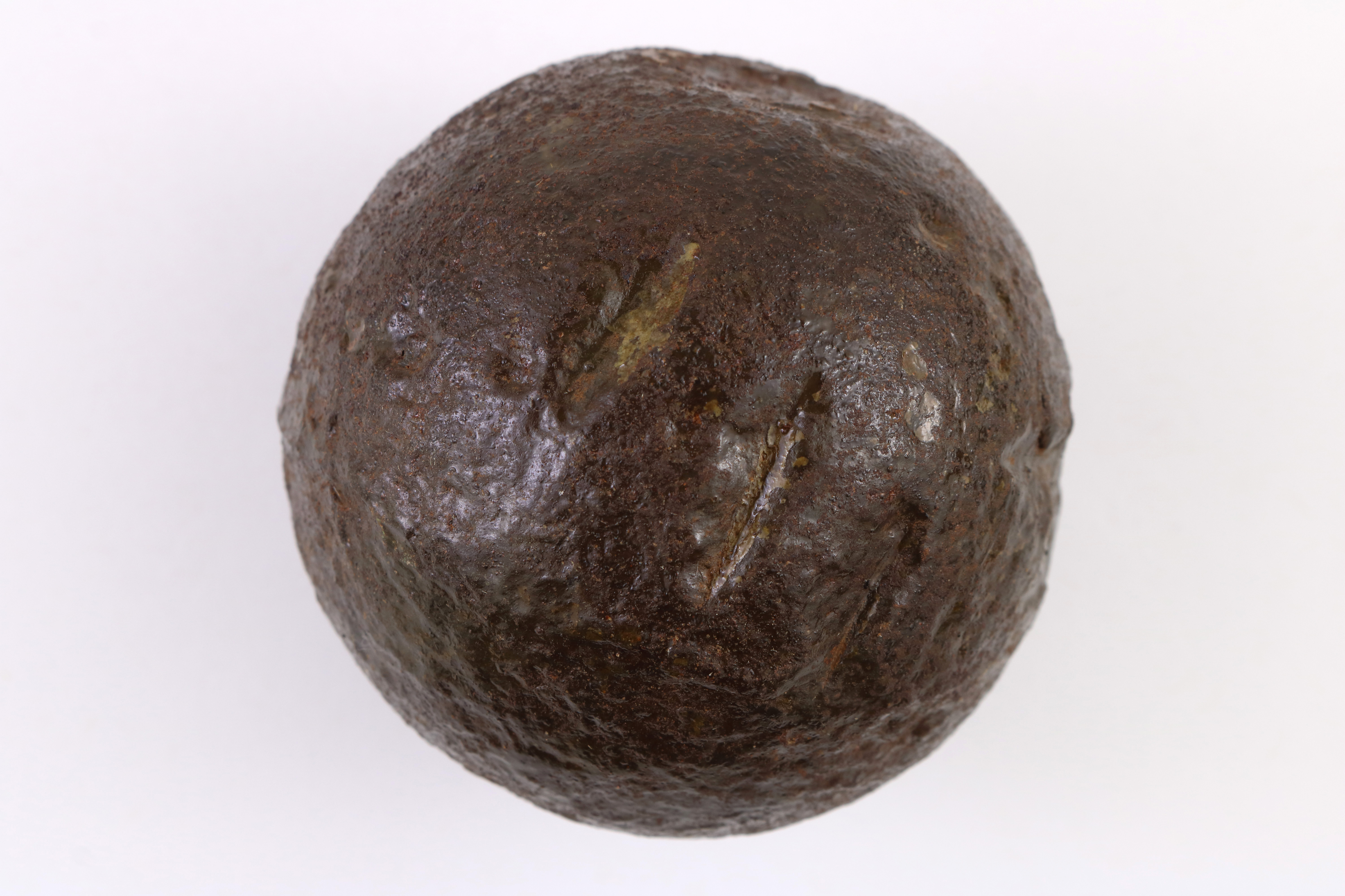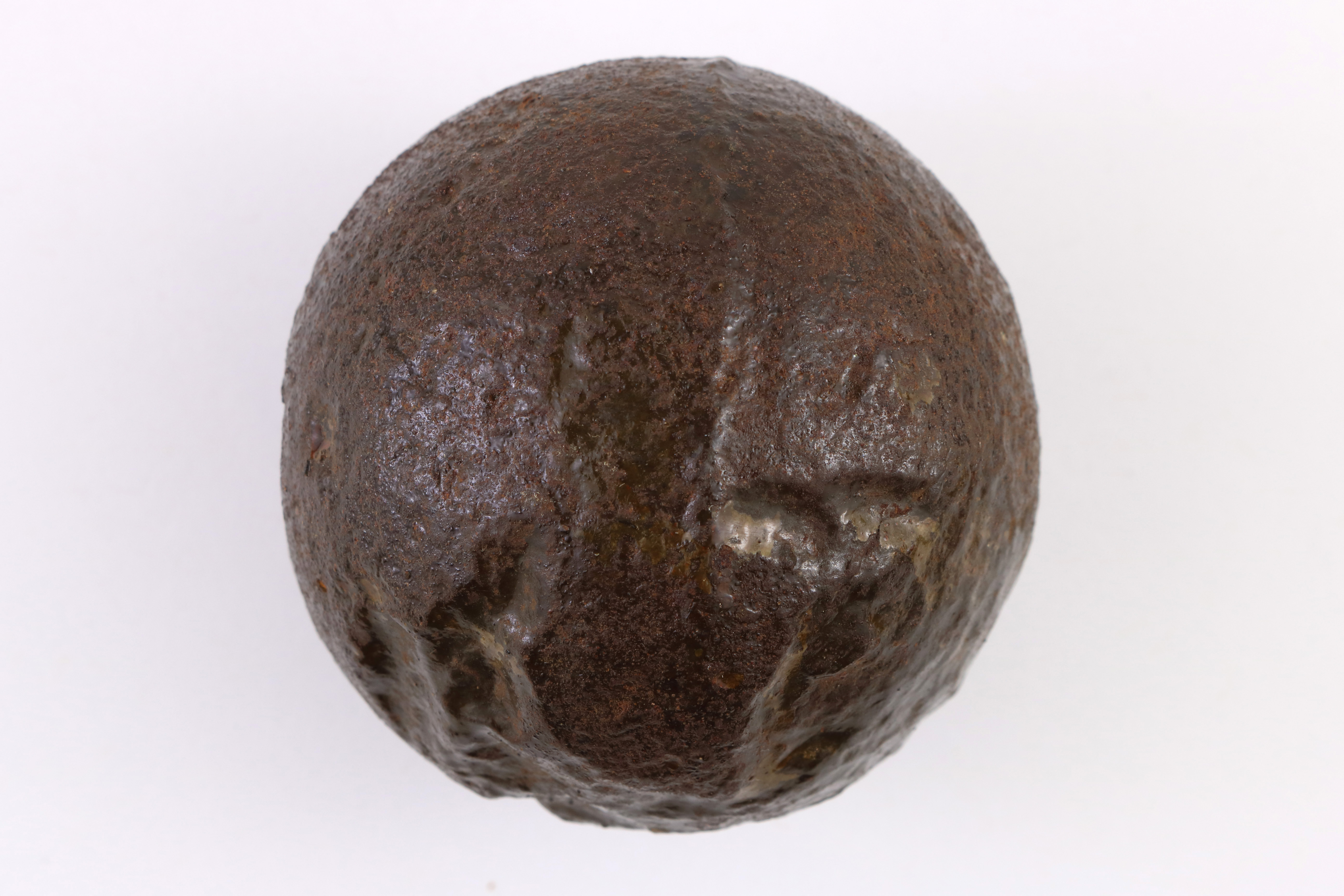 Le boulet est fabriqué en Angleterre avant 1711 et consiste en une sphère de fonte moulée. Cet objet est destiné à être utilisé avec des pièces d'artillerie telles que les canons et les mortiers. Puisqu'il s'agit d'un boulet de petit calibre pesant 1,8 kg, il serait associé aux canons renfloués du navire sur lequel il a été découvert.