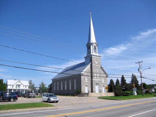 - les caractéristiques de l'église, entre autres son volume, dont le plan rectangulaire composé d'une nef à un vaisseau, d'un choeur en saillie plus étroit terminé par une abside à pans coupés ainsi que le toit à deux versants droits, sa façade, dont la tour-clocher centrale légèrement saillante (comprenant un tambour de plan carré, une chambre des cloches de plan carré surmontée d'une flèche terminée par une croix), les trois portails cintrés (comprenant une porte à double vantail et un tympan vitré), les ouvertures cintrées, l'oculus ainsi que la pierre portant le millésime « 1909 », les murs de la nef et du choeur, dont les ouvertures à arc cintré surmontées de claveaux, ses matériaux, dont le parement de pierre grise locale à bossage, la couverture en tôle à la canadienne ainsi que les éléments en bois (portes et fenêtres);