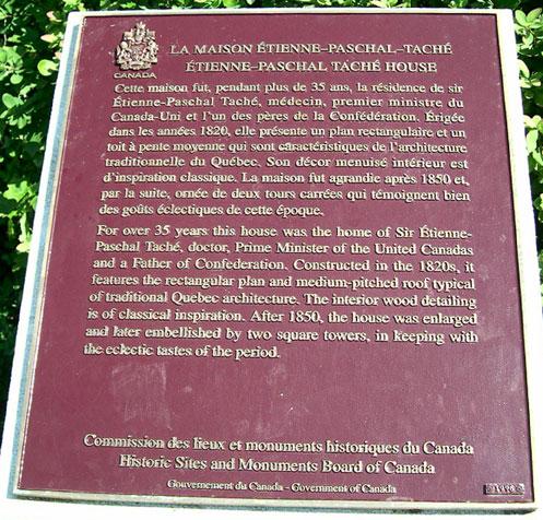 Cette maison fut, pendant plus de 35 ans, la résidence de sir Étienne-Paschal Taché, médecin, premier ministre du Canada-Uni et l'un des pères de la Confédération. Érigée dans les années 1820, elle présente un plan rectangulaire et un toit à pente moyenne qui sont caractéristiques de l'architecture traditionnelle du Québec. Son décor menuisé intérieur est d'inspiration classique. La maison fut agrandie après 1850 et, par la suite, ornée de deux tours carrées qui témoignent bien des goûts éclectiques de cette époque.