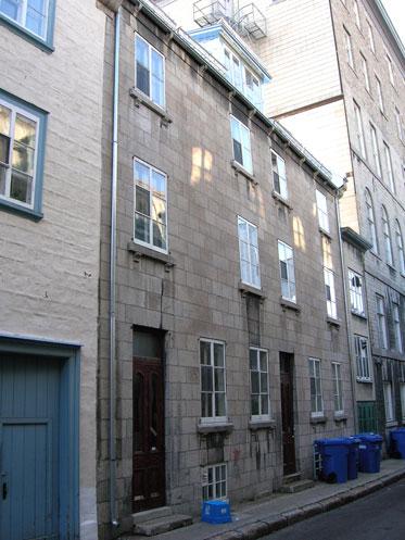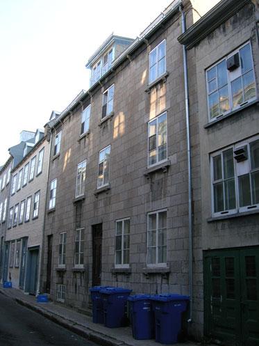 L'atlas Sanborn de 1875 montre deux maisons jumelées en pierre, exhaussées à trois étages et demi à cet endroit. Le mur qui les divise n'est pas continu, de sorte qu'une communication est possible de l'intérieur. Cette disposition existe encore d'ailleurs en 1957. En 1936, le Séminaire de Québec refait les divisions intérieures afin d'avoir trois logements, situé sur un étage chacun.