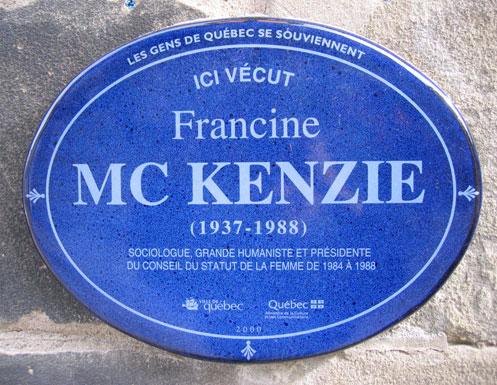 Ici vécut Francine Mc Kenzie (1937-1988).