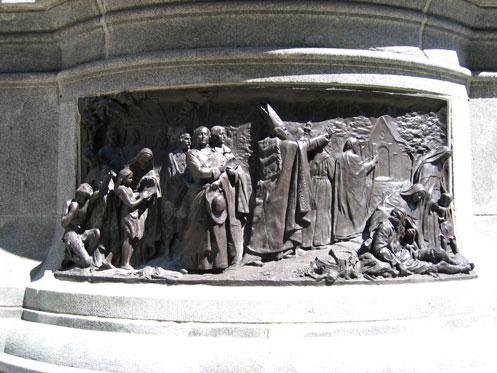 Bas-relief fixé au socle du monument de François de Laval de Montmorency.