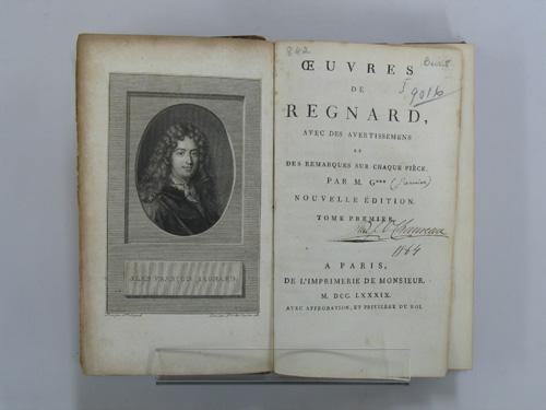Livre (Oeuvres de Regnard : avec des avestissemens [sic] et des remarques sur chaque pièce par M. G. (Tome I))