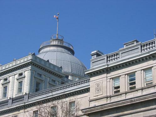 En 1890, environ un an après que le gouvernement du Canada eût transféré la propriété au gouvernement du Québec, débute un ambitieux projet d'agrandissement sous la gouverne de l'architecte Maurice Perrault, le fils de Henri-Maurice Perrault. Au programme, l'ajout d'un étage complet et d'un autre étage, au centre, surmonté d'un énorme dôme devant abriter la bibliothèque du Barreau; le programme comprend aussi la rénovation complète de l'intérieur. Le chantier est encore difficile en raison des nombreux imprévus, dont d'importants problèmes de structure. Vers la fin de 1892, l'architecte Alphonse Raza revoit les plans de Perrault. Le tout est finalement complété en 1894.