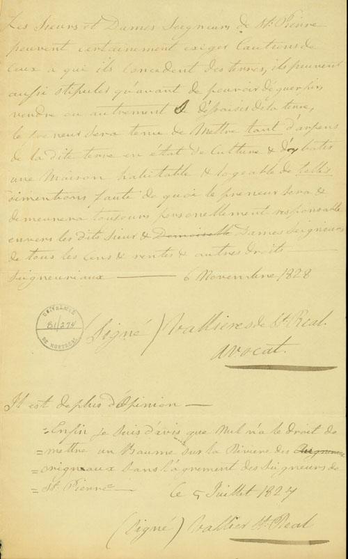 Document (Opinion concernant la seigneurie de St-Pierre)