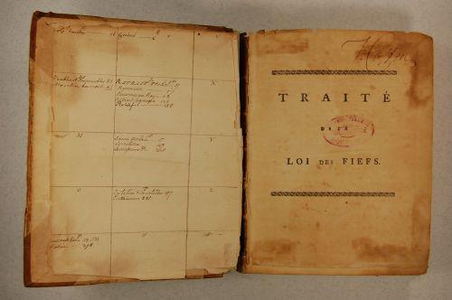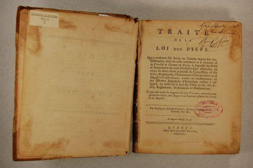 Livre (Traité de la loi des fiefs : qui a toujours été suivie en Canada depuis son établissement, tirée de celle contenue en la Coûtume de la Prévôté et Vicomté de Paris, à laquelle les Fiefs et Seigneuries de cette Province sont assujettis, en vertu de leurs titres primitifs de Concession, et des Edits, Reglemens (sic), Ordonnances et Déclarations de sa Majesté tres Chrétienne, rendus en conséquence; et des diferens Jugemens d'Intendans rendus à cet égard, en vertu de la Loi des fiefs, et des dits Edits, Reglemens, Ordonnances et Declarations, Traité utile à tous les Seigneurs de cette Province, tant nouveaux qu'anciens Sujets, aux juges et au Receveur-général des Droits de sa majesté)