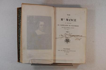 Livre (Vie de Mlle Mance et histoire de l'Hôtel-Dieu de Villemarie dans l'île de Montréal, en Canada. (Tome I))