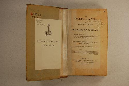 Livre (The pocket lawyer : a practical digest of the laws of Scotland reducing all the most important branches of those laws to short and familiar propositions supported by references to approved authorities : with an appendix of forms of writings, law expenses, &c)