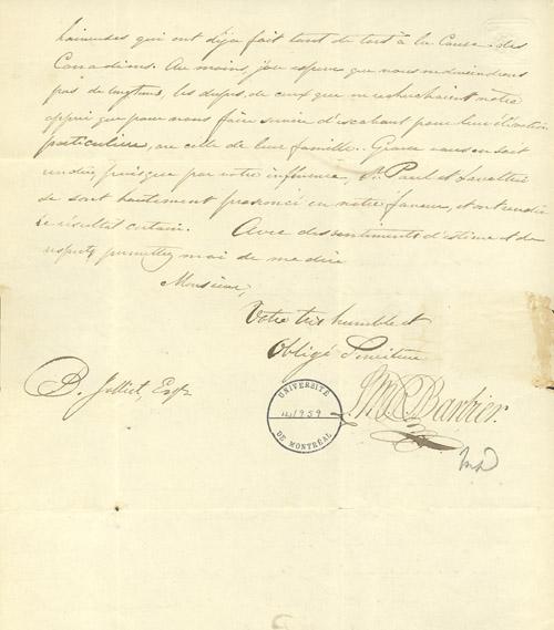 Document (Lettre de L. M. R. Barbier à B. Joliette)