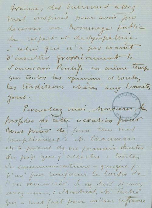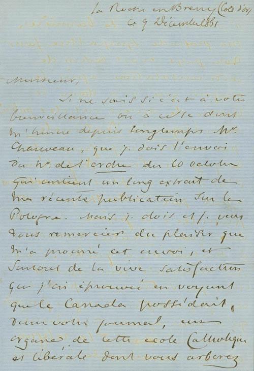 Document (Lettre de Charles de Montalembert à Hector Fabre)