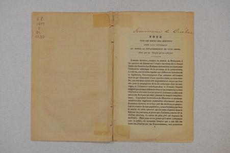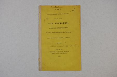 Brochure (Note additionnelle à celle de 1845 sur les biens des Jésuites, après leur suppression et depuis le rétablissement de leur Ordre, ainsi que sur l'emploi qui en a été fait)