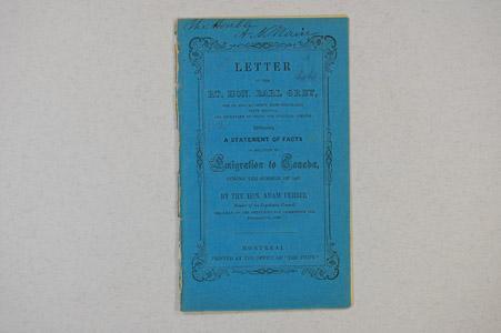Brochure (Letter to the Right Hon. Earl Grey, one of Her Majesty's Most Honorable Privy Council, and Secretary of State for Colonial Affairs, embracing a statement of facts in relation to emigration to Canada during the summer of 1847)