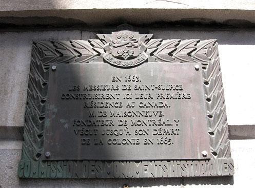 En 1663, les messieurs de Saint-Sulpice construisirent ici leur première résidence au Canada. M. de Maisonneuve, fondateur de Montréal, y vécut jusqu'à son départ de la colonie en 1665.