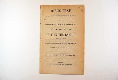 - Discourse delivered in the cathedral of St. Michael, Toronto, by the Reverend Father R.J. Tellier, S.J.: on the festival of St. John the Baptist, 24th June, 1851: before the Society of St. John the Baptist