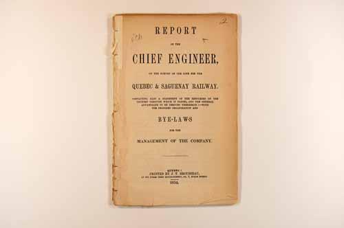 Brochure (Report of the Chief Engineer, on the survey of the line for the Quebec & Saguenay Railway : containing also a statement of the resources of the country through which it passes, and the general advantages to be derived therefrom: with the proposed organization and bye-laws for the management of the company)