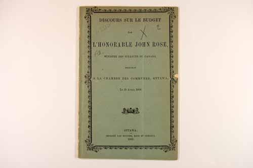 Brochure (Discours sur le budget par l'Honorable John Rose, ministre des finances du Canada : prononcé à la Chambre des communes, Ottawa, le 28 avril 1868)