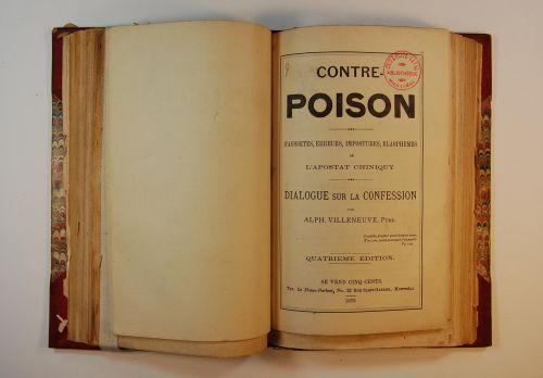 Brochure (Contre-poison : faussetés, erreurs, impostures, blasphèmes de l'apostat Chiniquy ; dialogue sur la confession)