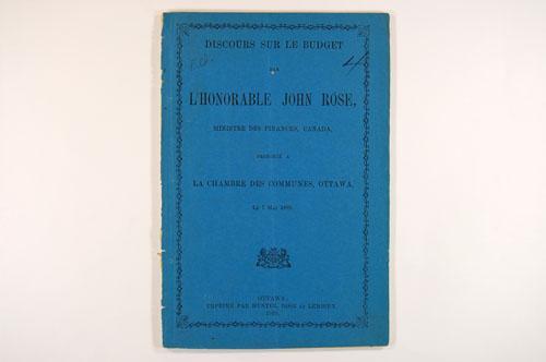 Brochure (Discours sur le budget par l'Honorable John Rose, ministre des finances, Canada : prononcé à la Chambre des communes, Ottawa, le 7 mai 1869)
