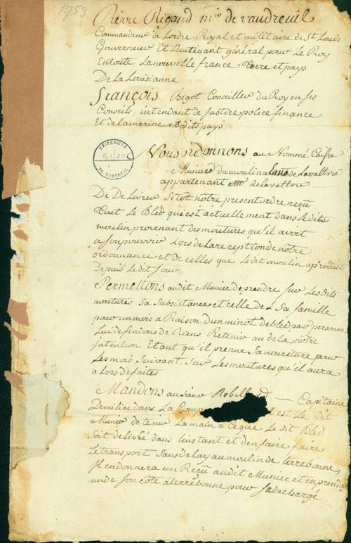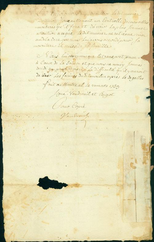 Document (Réquisition de blé au moulin de Lavaltrie)