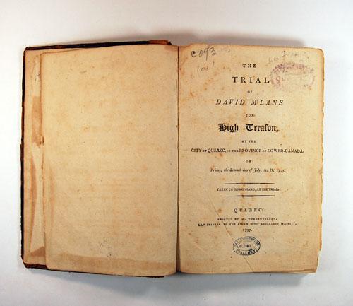Livre (The trial of David McLane for high treason , at the city of Quebec, in the Province of Lower-Canada on Friday, the seventh day of July, A.D. 1797 : taken in short-hand, at the trial)
