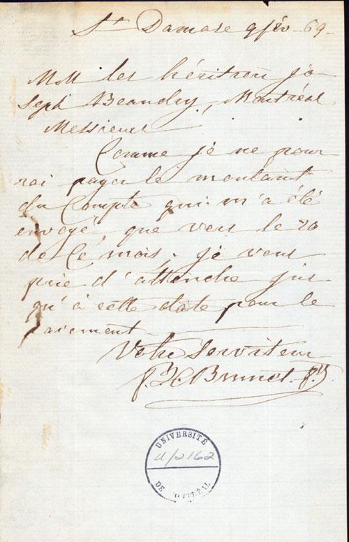 Document (Lettre de l'abbé F. X. Brunet à la succession de Beaudry)